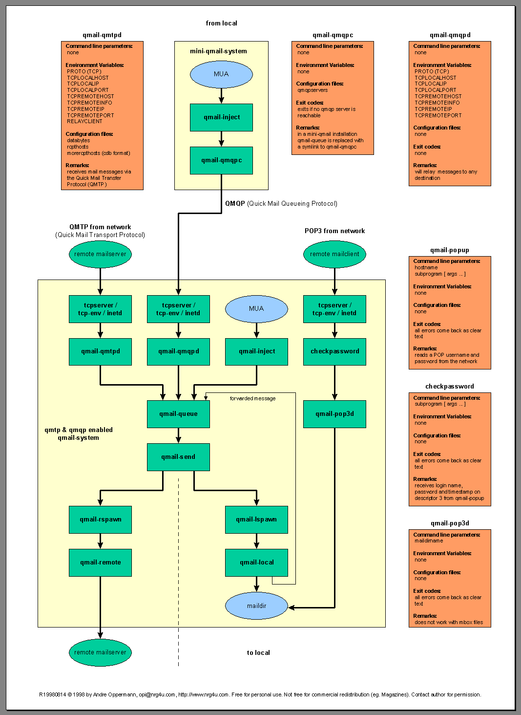 Напротив, только две программы qmail, qmail-start и qmail-lspawn, выполняются с правами root.